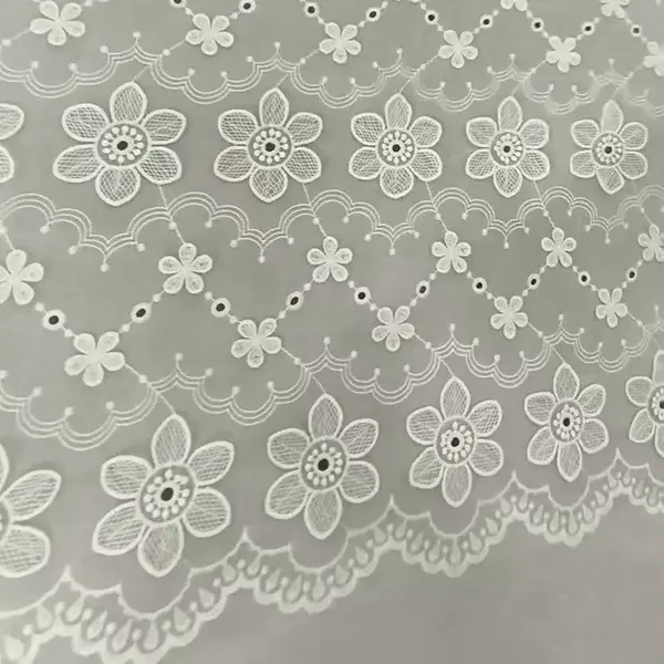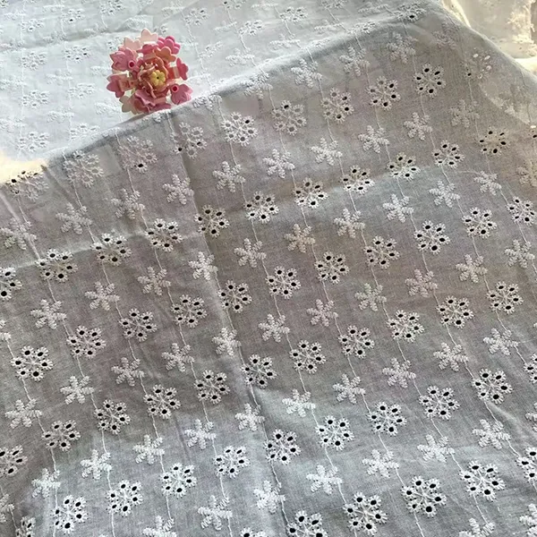 Tissu à gorges en dentelle en coton brodé Ce tissu en dentelle en coton léger et respirant dispose d'une broderie à oeillets délicate, offrant un design charmant et texturé parfait pour la mode printemps et estivale. Idéal pour les robes, les chemisiers, les rideaux et l'artisanat, il combine l'élégance vintage avec un confort naturel. Les schémas d'œillets ** ouverts ** améliorent le flux d'air tout en maintenant la durabilité. Doux, polyvalent et facile à coudre, ce tissu est un choix intemporel pour les vêtements et la décoration intérieure. Disponible en plusieurs couleurs et largeurs, il est parfait pour les styles romantiques, boho ou classiques.
