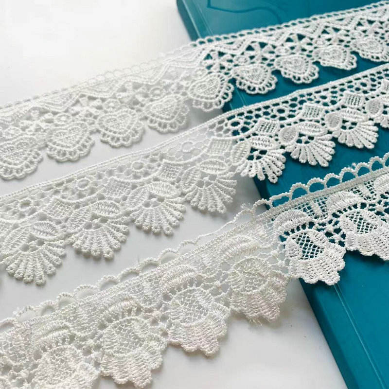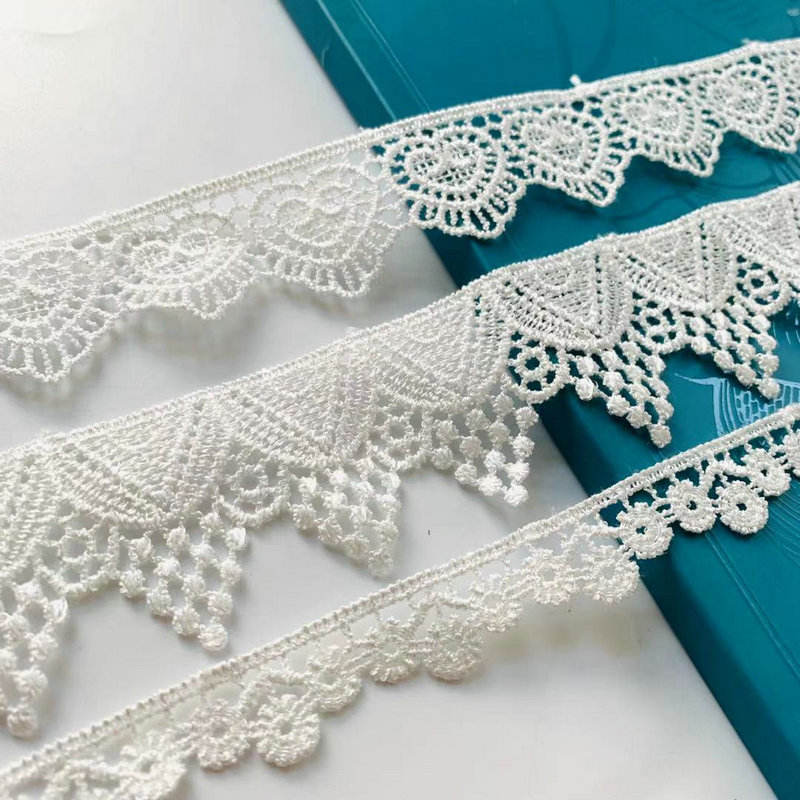 Soie de lait blanche de 3 cm, bordure en dentelle de broderie soluble dans l'eau en polyester