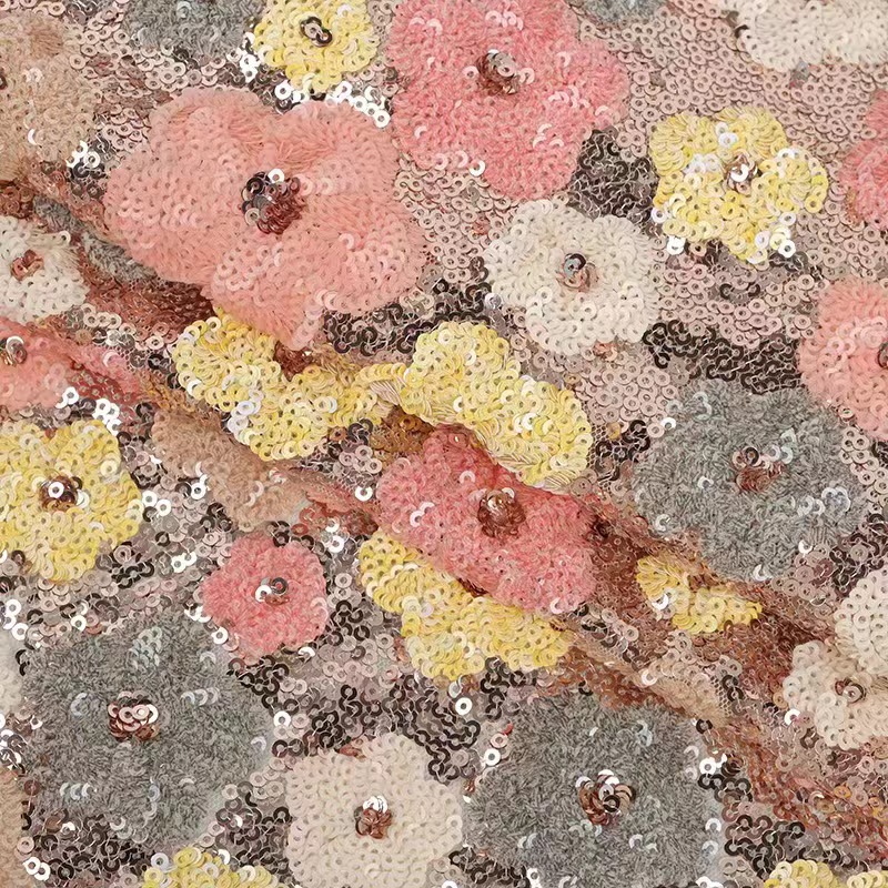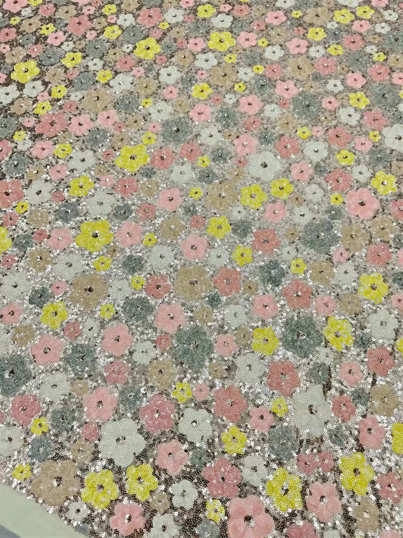 Le tissu à paillettes est disponible dans une grande variété de couleurs, de designs et de motifs, ce qui le rend polyvalent pour toute occasion ou tout style. Les paillettes peuvent être disposées selon différents motifs, tels que des fleurs, des motifs géométriques ou des paillettes sur toute la surface, offrant ainsi des possibilités de conception infinies.