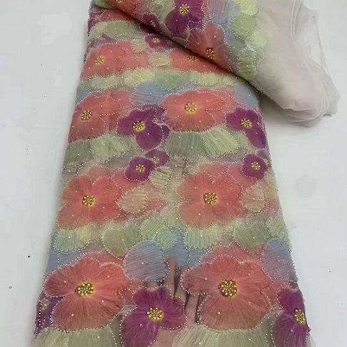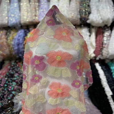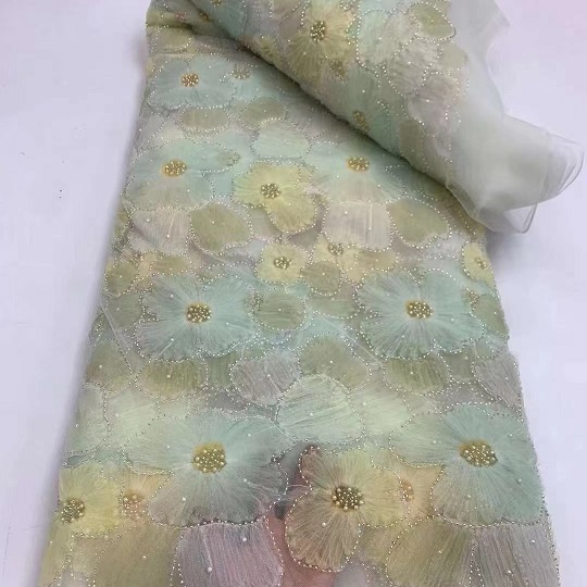 Il existe un autre type adorable de Tissu en dentelle de tulle et maille brodée à la main, tissu en dentelle florale 3D pour robe de mariée, en dentelle de perles. Ils sont absolument élégants et sont parfaits pour décorer des vêtements décontractés et des robes de soirée.