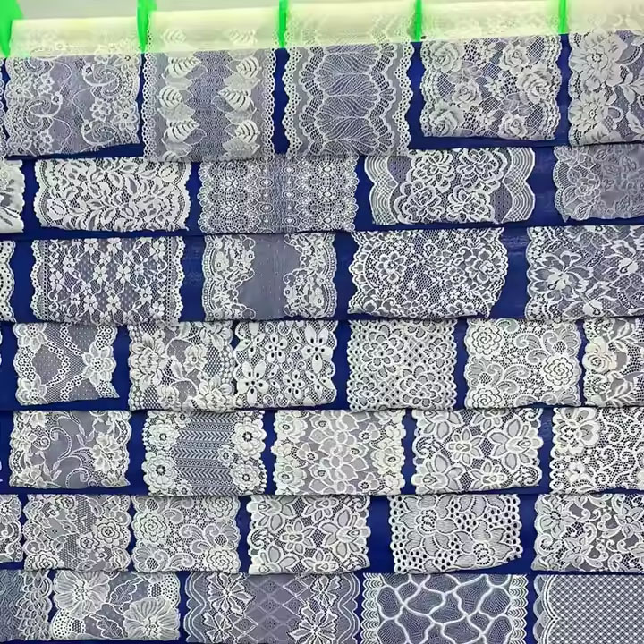 4. Les matériaux en dentelle élastique indifférents sont différents. Coton: doux, respirant et confortable sur la peau. Nylon: fort, durable et résistant à l'abrasion. Fibre élastique: offre une bonne étirement et une bonne récupération. Mélange: fournit une combinaison de différentes propriétés de fibres.