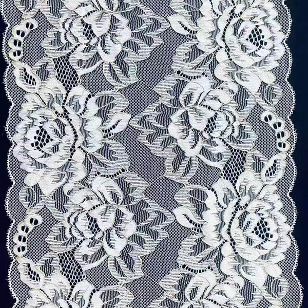 LB® est un fabricant de dentelle Tricot à grande échelle, ces garnitures en dentelle élastique sont les dernières conceptions de dentelle de haute qualité. La bordure en dentelle élastique est en soie de lait, elle peut être utilisée dans les vêtements, les sacs et les produits textiles pour la maison.