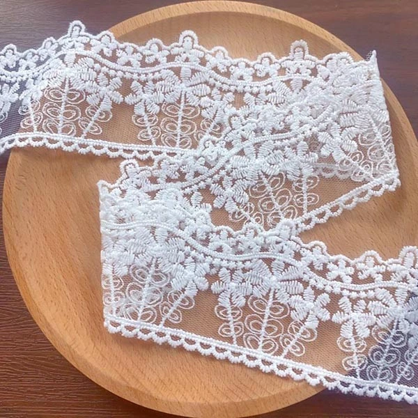 Soie de lait blanche de 3 cm, bordure en dentelle de broderie soluble dans l'eau en polyester